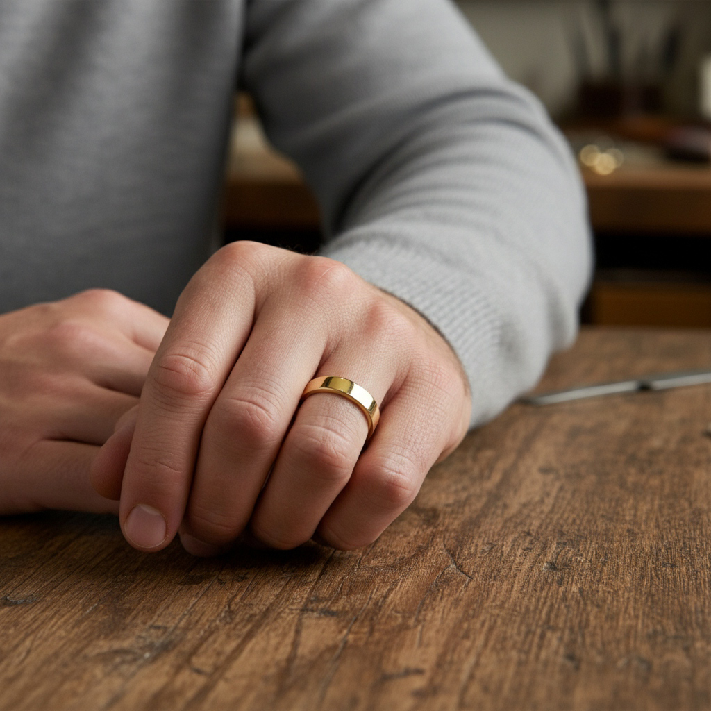 A flat or rectangular band is flat on either side and is wider than it is thick. It’s the perfect choice for anyone who wants a modern minimal look. Also provides a great surface area when considering applying a texture.
